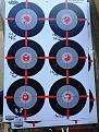 Finally got the scope mounted and a range day. Took it about ten rounds to settle in and it really started tightening up. It seems to like the Eley Contact 42 grain subsonic ammo the best. I'll get a batch of that soon. (Top right target) Finished up with the ten shots in the red dot. Aguila standard velocity that I have a ton of. (The stuff in the gray was something else.) I think this will shoot squirrels. Vortex 2-7 on it.
